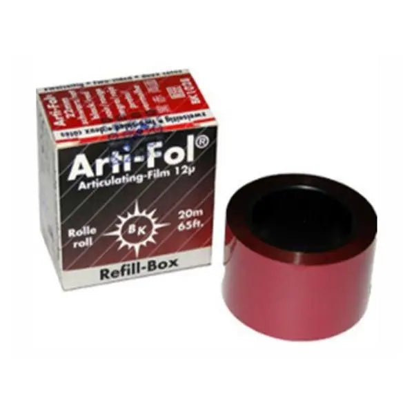 The unique combination of a high-tech metal foil (Shimstock foil 12μ) and a two-sided color coating with micro-fine ground color pigments enables clear visible marking of all occlusal contact points. Arti-Fol® metallic BK 28 also precisely marks moist occlusal surfaces. It is thus universally applicable for all materials such as metal, ceramics and plastics, including composites and natural teeth.